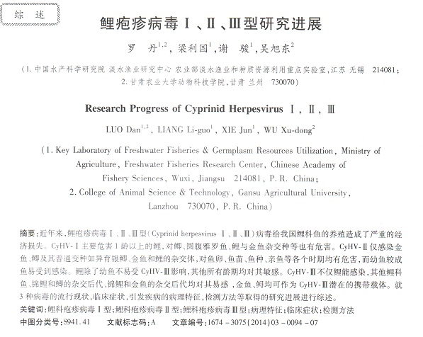 鯉皰疹病毒Ⅰ、Ⅱ、Ⅲ型研究進(jìn)展