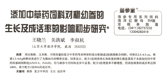 添加中草藥飼料對稚幼參的生長及成活率的影響初步研究