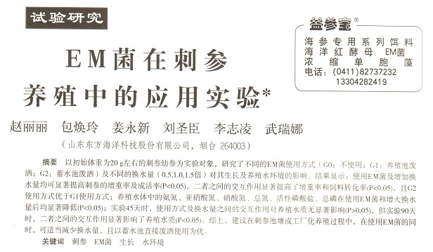 EM菌在刺參養(yǎng)殖中的應(yīng)用實(shí)驗(yàn)