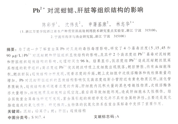 Pb2+對(duì)泥蚶鰓、肝臟等組織結(jié)構(gòu)的影響