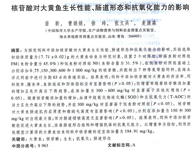 核苷酸對大黃魚生長性能、腸道形態(tài)和抗氧化能力的影響