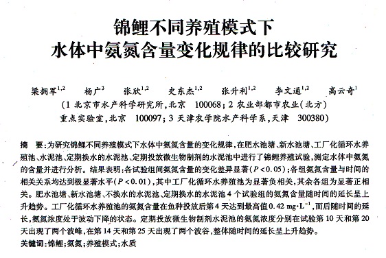 錦鯉不同養(yǎng)殖模式下水體中氨氮含量變化規(guī)律的比較
