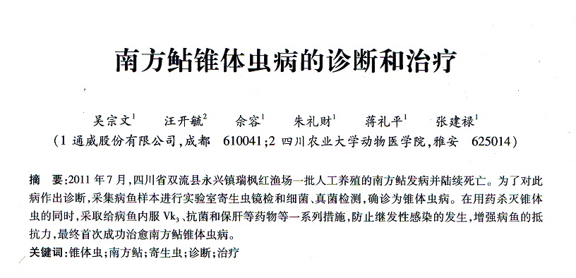 南方鲇錐體蟲病的診斷和治療