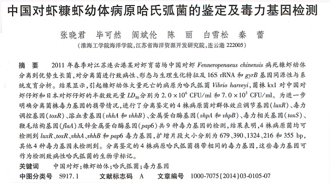中國對蝦糠蝦幼體病原哈氏弧菌的鑒定及毒力基因檢測