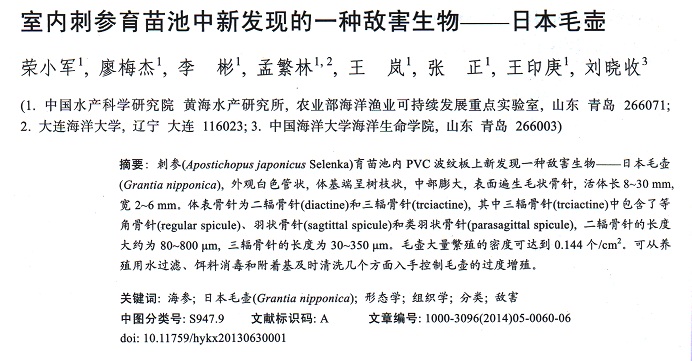 室內(nèi)刺參育苗池中新發(fā)現(xiàn)的一種敵害生物————日本毛壺