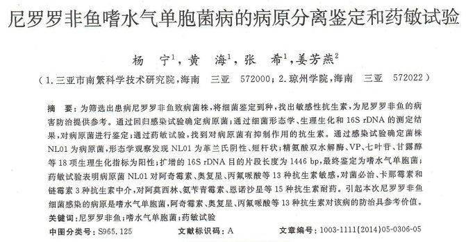 尼羅羅非魚嗜水氣單胞菌病的病原分離鑒定和藥敏試驗(yàn)