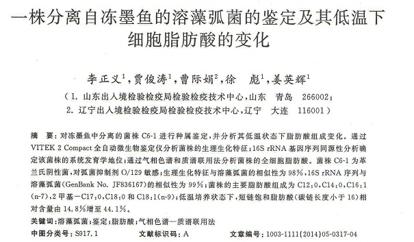 一株分離自凍墨魚(yú)的溶藻弧菌的鑒定及其低溫下細(xì)胞脂肪酸的變化