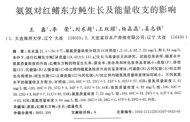氨氮對紅鰭東方鲀生長及能量收支的影響