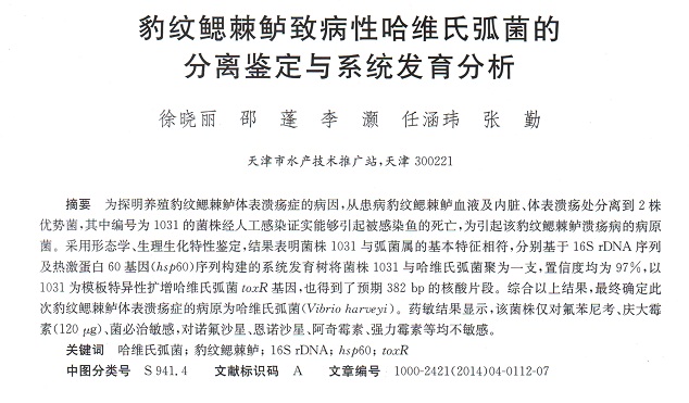 豹紋鰓棘鱸致病性哈維氏弧菌的分離鑒定與系統(tǒng)發(fā)育分析