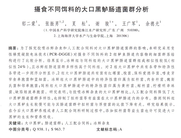 攝食不同餌料的大口黑鱸腸道菌群分析