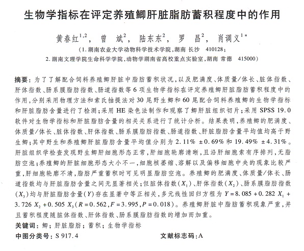 生物學(xué)指標(biāo)在評定養(yǎng)殖鯽肝臟脂肪蓄積程度中的作用