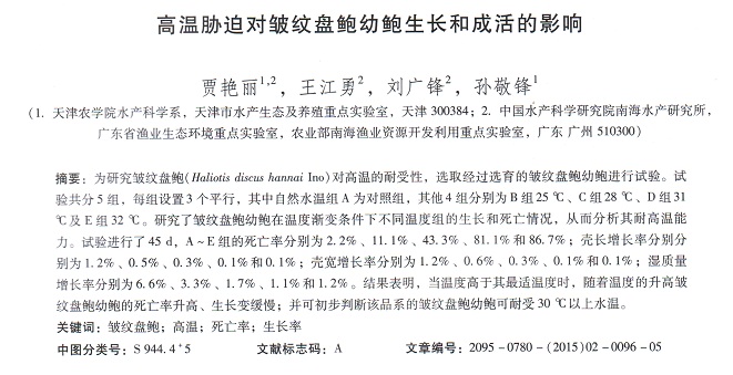 高溫脅迫對皺紋盤鮑幼鮑生長和成活的影響