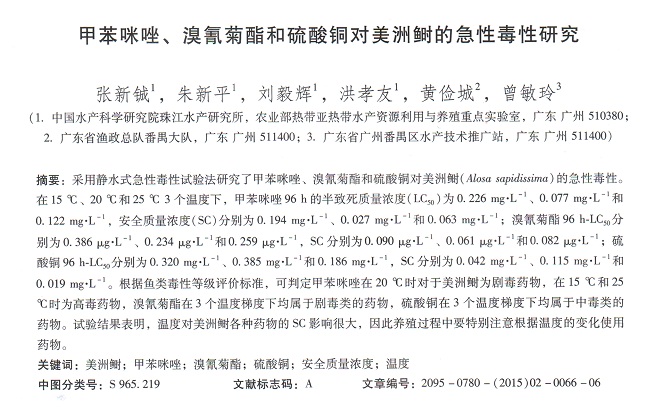甲苯咪唑、溴氰菊酯和硫酸銅對美洲鰣的急性毒性研究