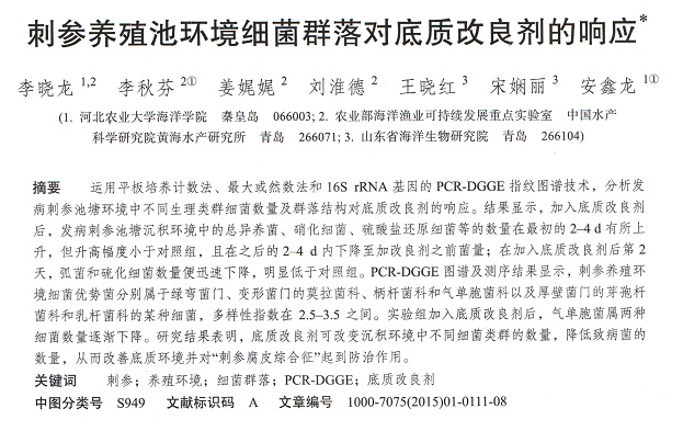 刺參養(yǎng)殖池環(huán)境細(xì)菌群落對(duì)底質(zhì)改良劑的響應(yīng)