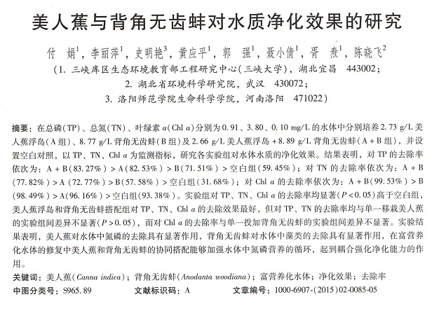 美人蕉與背角無(wú)齒蚌對(duì)水質(zhì)凈化效果的研究