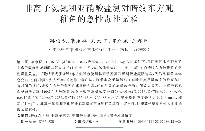 非離子氨氮和亞硝酸鹽氮對(duì)暗紋東方鲀稚魚(yú)的急性毒性試驗(yàn)
