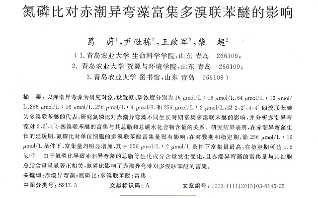 氮磷比對赤潮異彎藻富集多溴聯(lián)苯醚的影響