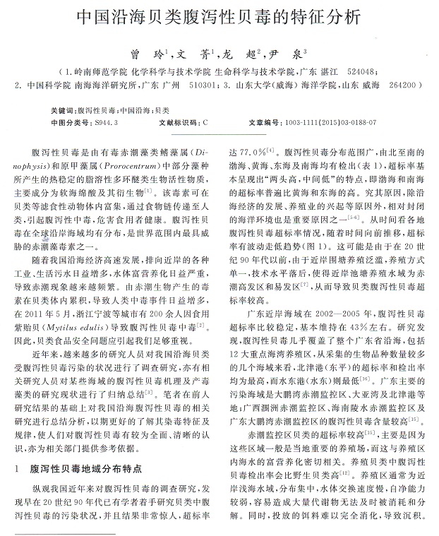 中國沿海貝類腹瀉性貝毒的特征分析(1)