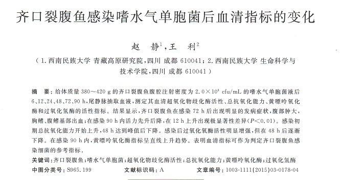 齊口裂腹魚感染嗜水氣單胞菌后血清指標(biāo)的變化