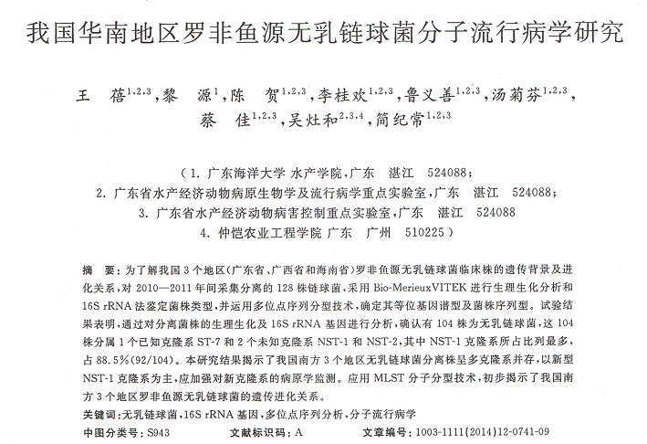 我國(guó)華南地區(qū)羅非魚源無(wú)乳鏈球菌分子流行病學(xué)研究