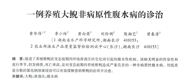 一例養(yǎng)殖大鯢非病原性腹水病的診治
