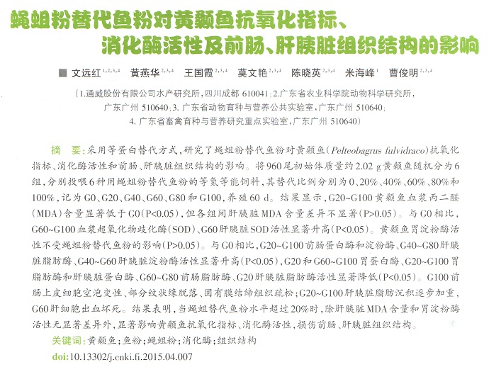 蠅蛆粉替代魚粉對黃顙魚抗氧化指標、消化酶活性及前腸、肝胰臟組織結構的影響