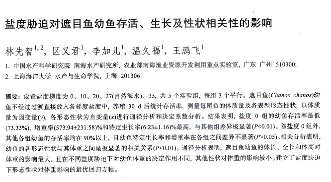 鹽度脅迫對遮目魚幼魚存活、生長及性狀相關(guān)性的影響