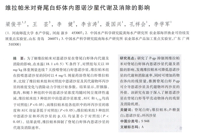 維拉帕米對脊尾白蝦體內(nèi)恩諾沙星代謝及消除的影響