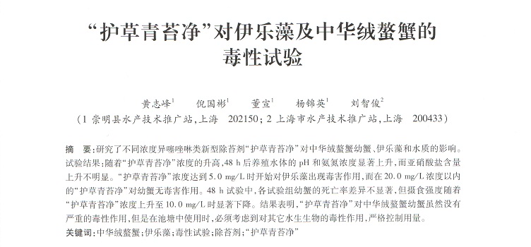“護(hù)草青苔凈”對(duì)伊樂藻及中華絨螯蟹的毒性試驗(yàn)