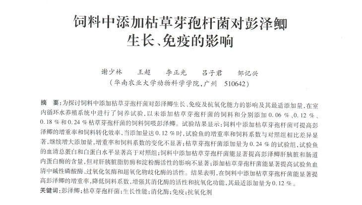 飼料中添加枯草芽孢桿菌對彭澤鯽生長、免疫的影響