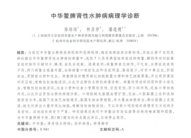 中華鱉脾腎性水腫病病理學(xué)診斷