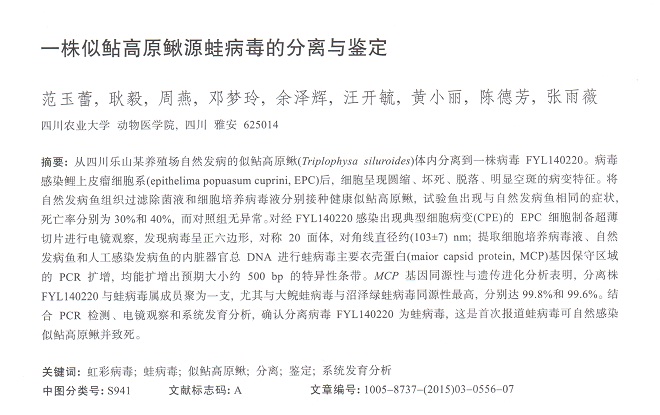 一株似鲇高原鰍源蛙病毒的分離與鑒定