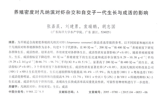 養(yǎng)殖密度對凡納濱對蝦雜交和自交子一代生長與成活的影響