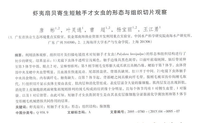 蝦夷扇貝寄生短觸手才女蟲的形態(tài)與組織切片觀察