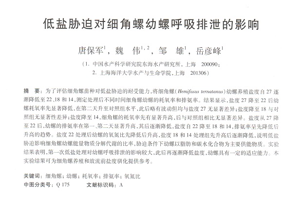 低鹽脅迫對細(xì)角螺幼螺呼吸排泄的影響