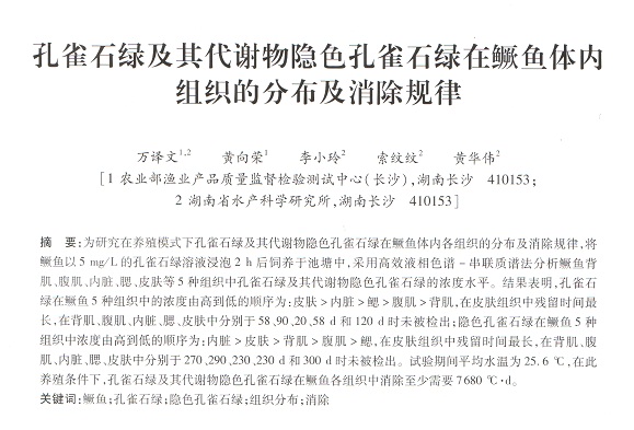 孔雀石綠及其代謝物隱色孔雀石綠在鱖魚體內(nèi)組織的分布及消除規(guī)律