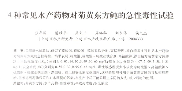 4種常見水產(chǎn)藥物對菊黃東方鲀的急性毒性試驗
