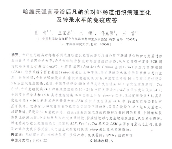 哈維氏弧菌浸浴后凡納濱對蝦腸道組織病理變化及轉(zhuǎn)錄水平的免疫應(yīng)答