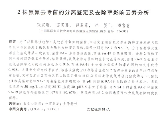 2株氨氮去除菌的分離鑒定及去除率影響因素分析