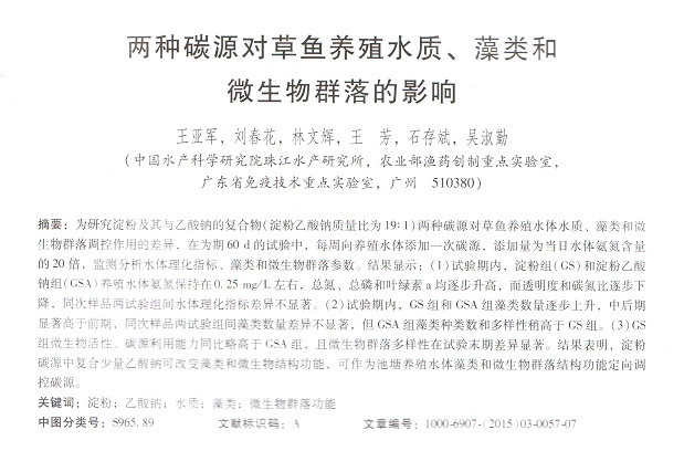 兩種碳源對草魚養(yǎng)殖水質(zhì)、藻類和微生物群落的影響