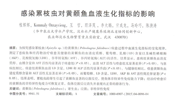感染累枝蟲對黃顙魚血液生化指標的影響