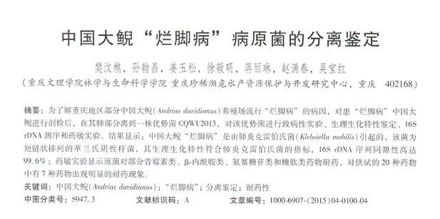中國大鯢“爛腳病”病原菌的分離鑒定