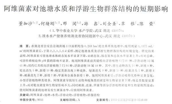阿維菌素對池塘水質(zhì)和浮游生物群落結(jié)構(gòu)的短期影響