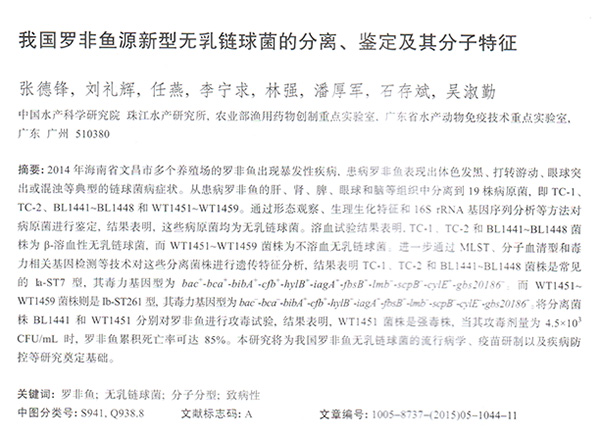 我國羅非魚源新型無乳鏈球菌的分離、鑒定及其分子特征