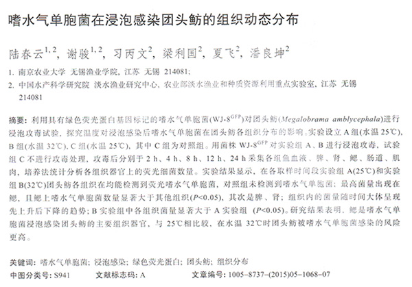 嗜水氣單胞菌在浸泡感染團(tuán)頭魴的組織動(dòng)態(tài)分布