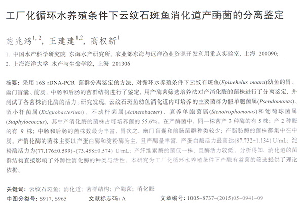 工廠化循環(huán)水養(yǎng)殖條件下云紋石斑魚消化道產(chǎn)酶菌的分離鑒定