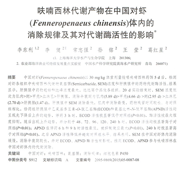 呋喃西林代謝產(chǎn)物在中國(guó)對(duì)蝦(Fenneropenaeus chinensis)體內(nèi)的消除規(guī)律及其對(duì)代謝酶活性的影響