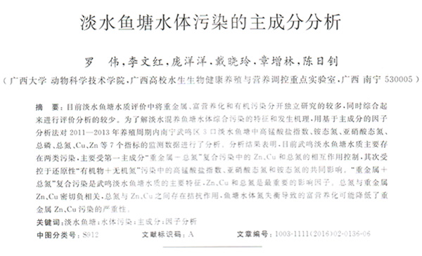 淡水魚(yú)塘水體污染的主成分分析