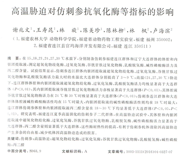高溫脅迫對仿剌參抗氧化酶等指標的影響