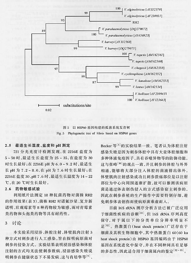 養(yǎng)殖刺參潰瘍病病原菌RH2的鑒定及其生物學特征分析6